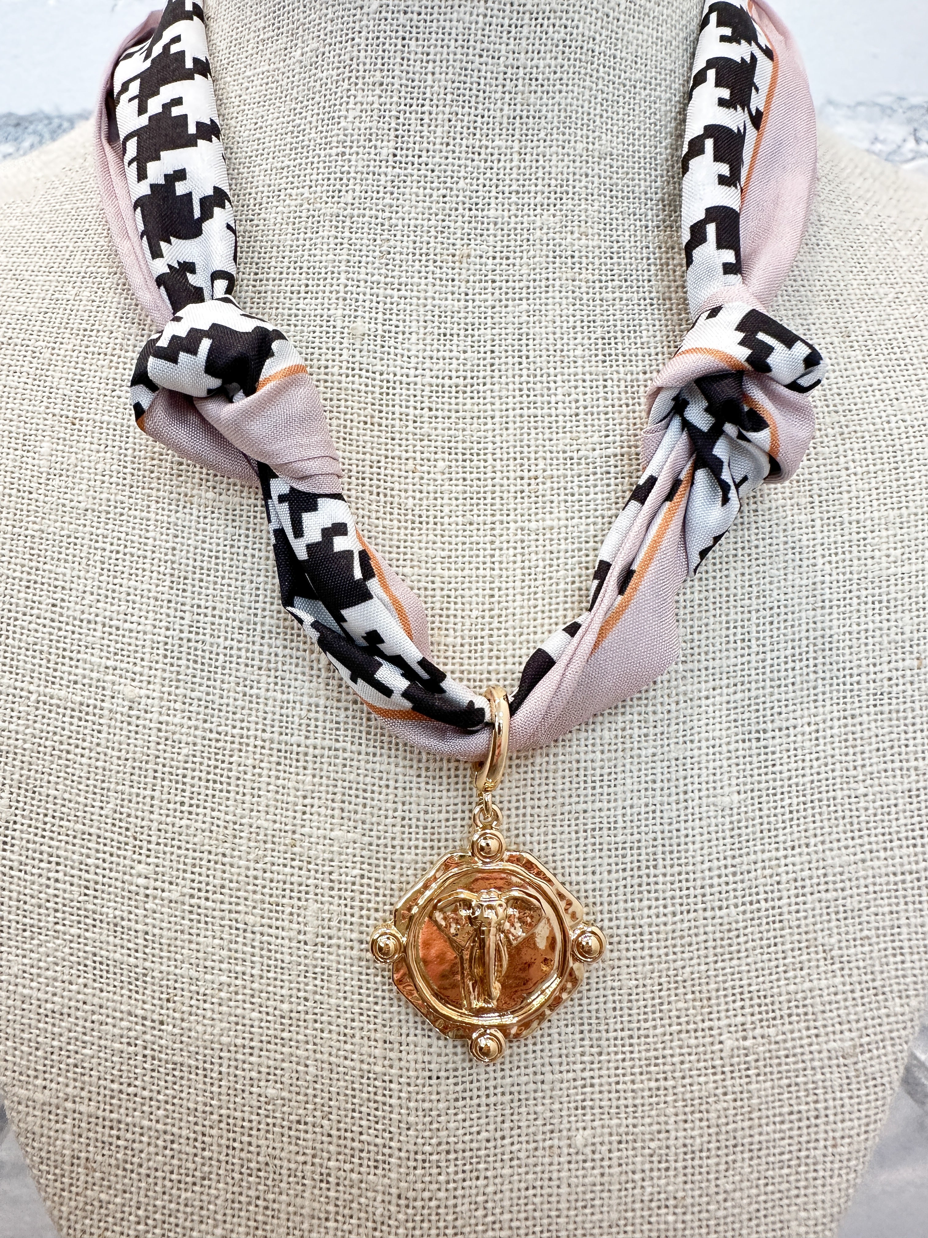 Gameday Scarf Necklace - Houndstooth with Elephant Medallion