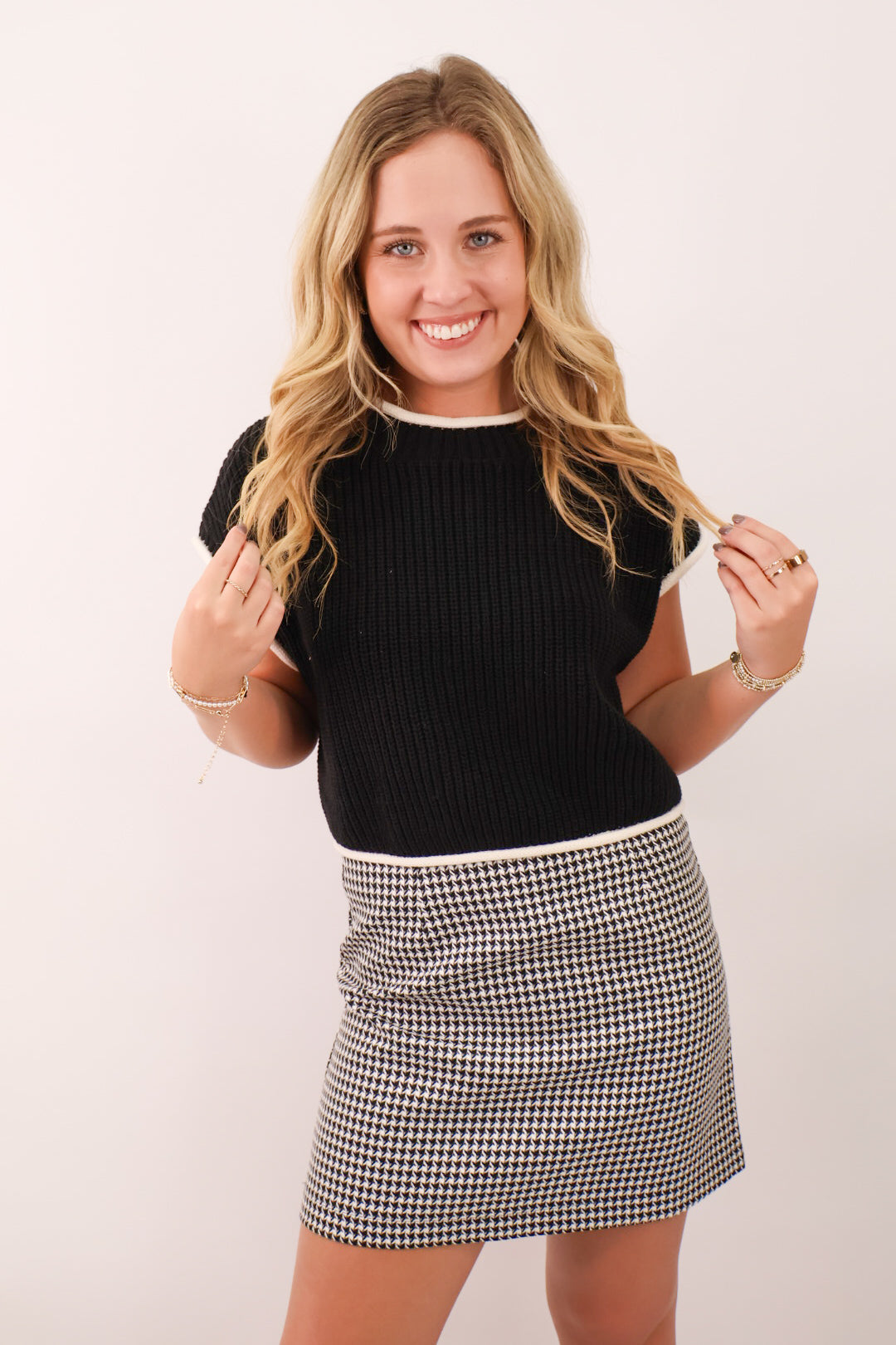 - Houndstooth skirt