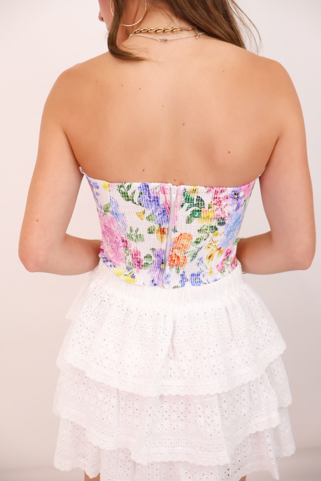 Sweet, feminine, and just begging for a weekend getaway—the White Eyelet Tiered Skirt is the flirty staple your summer wardrobe needs. Featuring three tiers of scalloped eyelet lace, this mini skirt brings all the charm while keeping things light and breezy.
