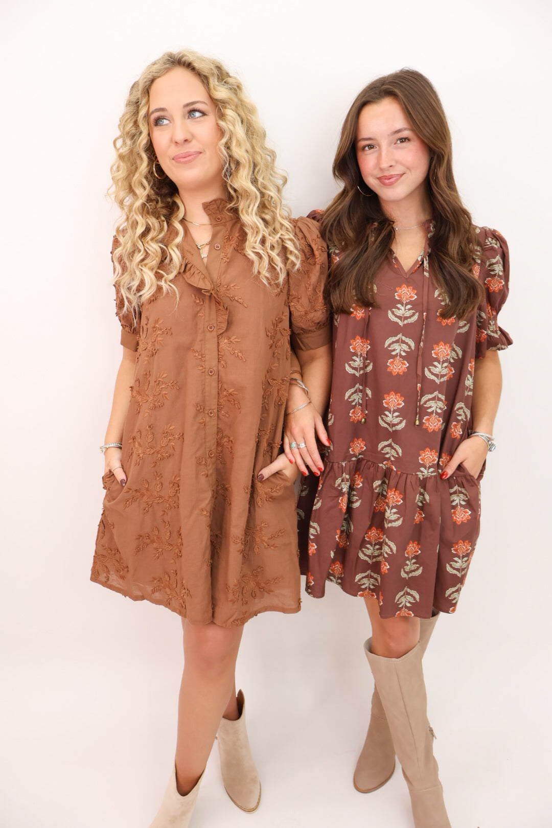 Romantic texture meets effortless ease in the Fall Embroidered Dress — your go-to fall dress that feels as special as it looks. Designed with allover tonal floral embroidery, this dress brings depth and dimension in the prettiest way. The relaxed, slightly swingy silhouette makes it ultra-comfortable, while the puff sleeves and button-front detailing keep it polished and feminine.