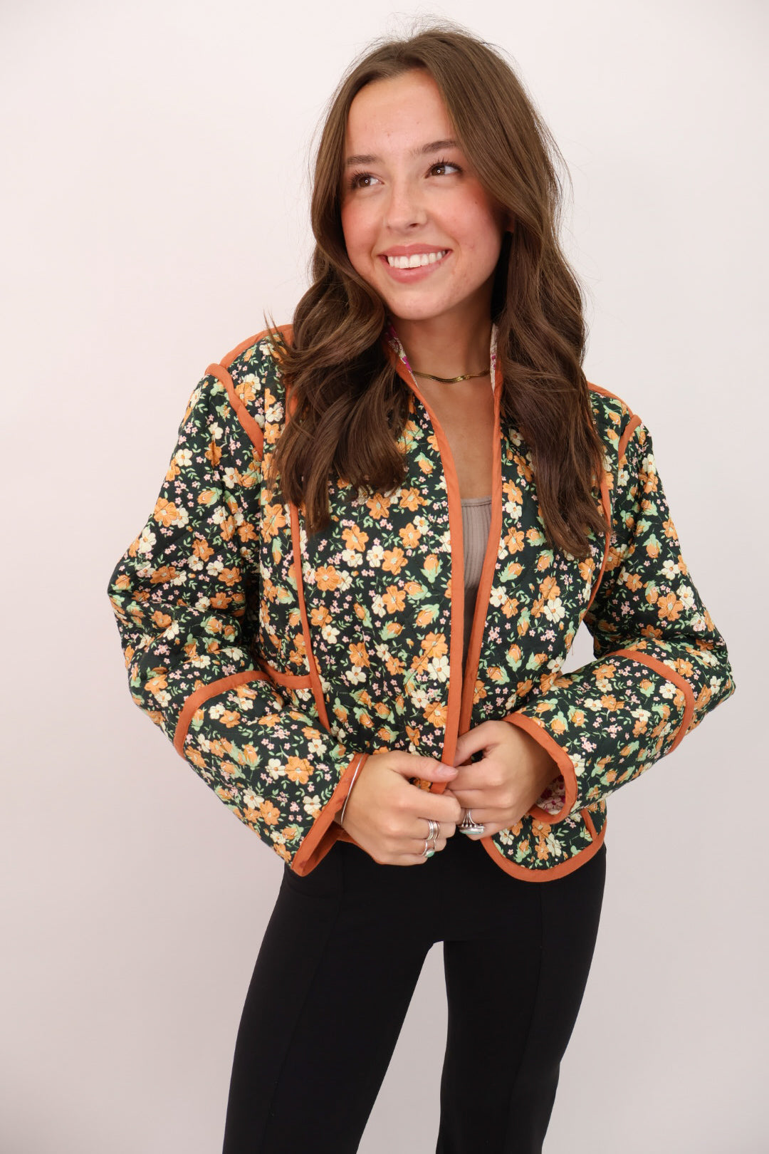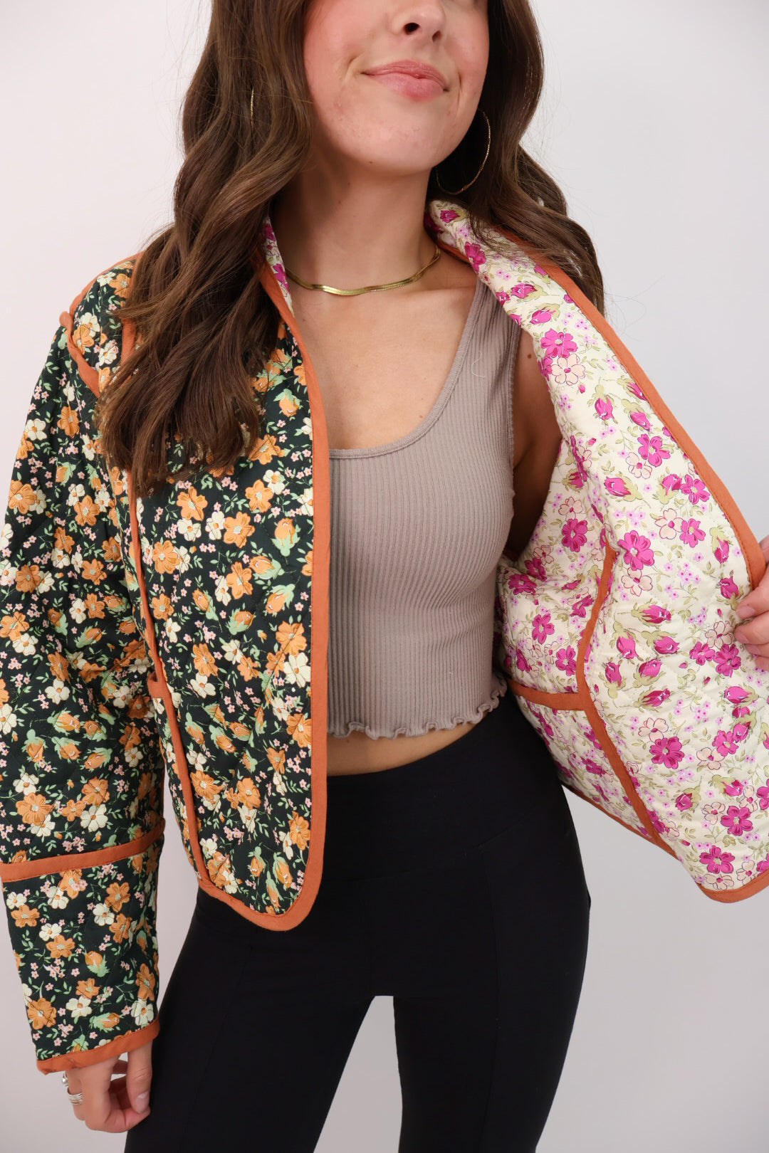 Rust Floral Quilted Jacket