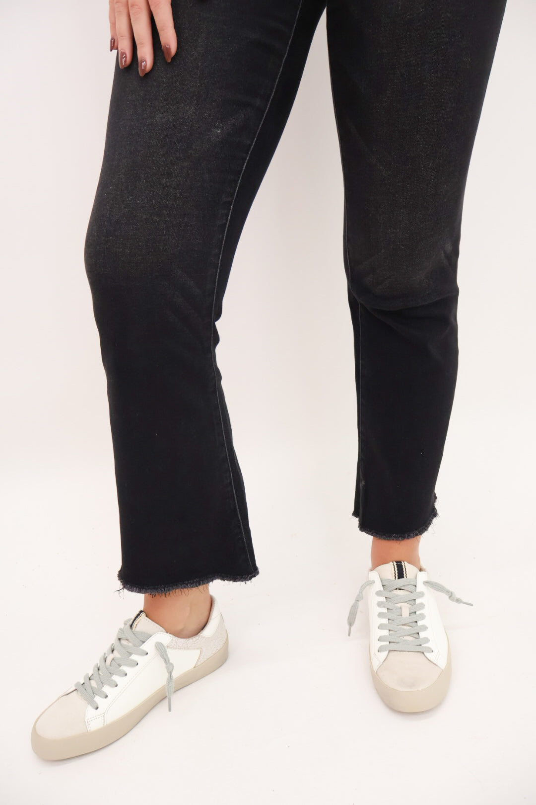 Give your denim lineup a sleek refresh with the Vervet Alison Black Mid Rise Crop Denim. These are the perfect mix of edgy and easy-to-wear — designed in a deep black wash with subtle fading that adds dimension. The cropped cut with a raw, frayed hem gives them a modern, lived-in feel, while the comfort stretch fabric makes them a pair you’ll reach for again and again!
