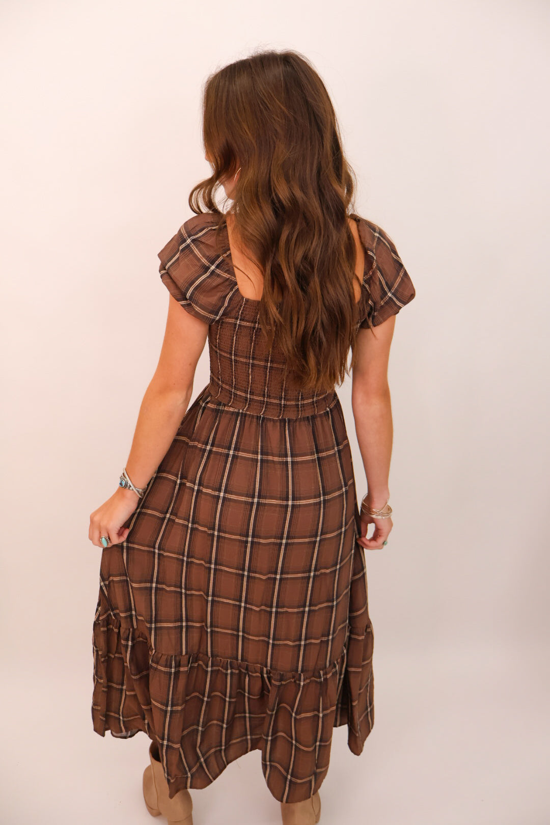 Meet your new fall favorite — the Brown Plaid Midi Dress blends timeless plaid with a flattering, feminine silhouette! Featuring a square neckline, puff sleeves, and a smocked bodice, this dress fits like a dream while still being incredibly comfortable. The tiered skirt moves beautifully whether you’re walking through the pumpkin patch or heading to a casual dinner date.