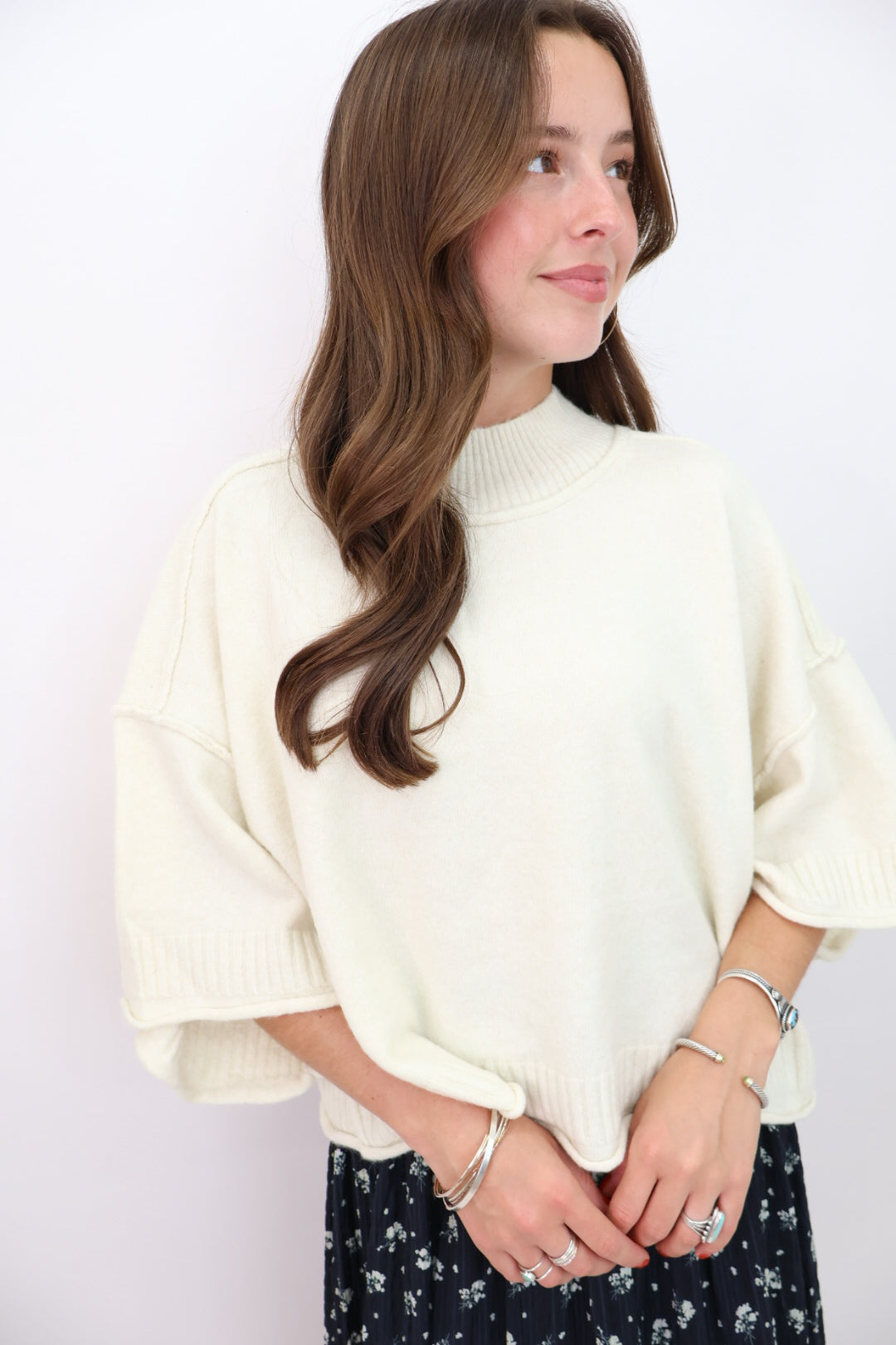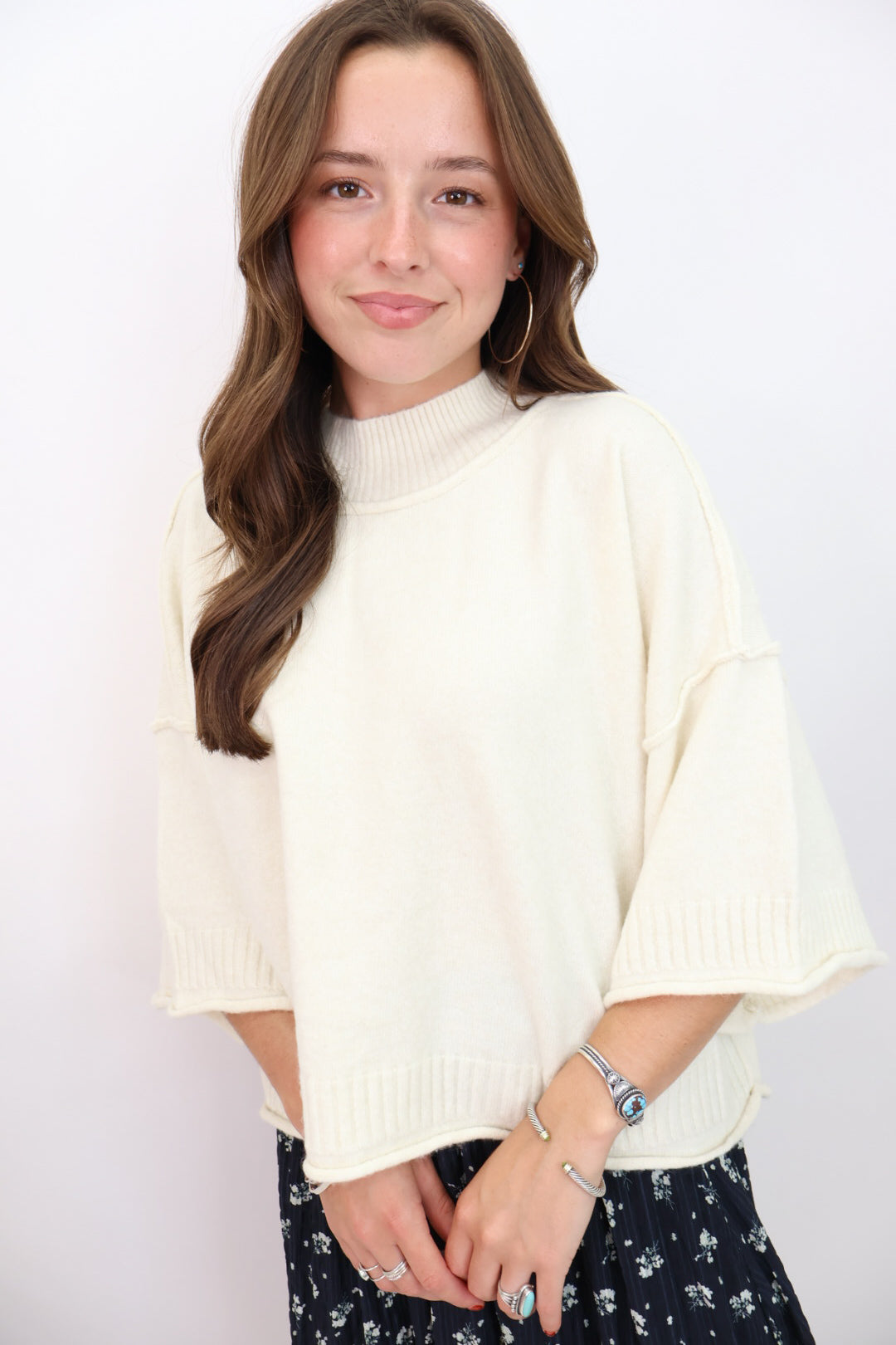 short sleeve sweater top, knit top for fall, transitional fall outfit, elevated basic sweater top, women’s fall knitwear, boxy oversized sweater