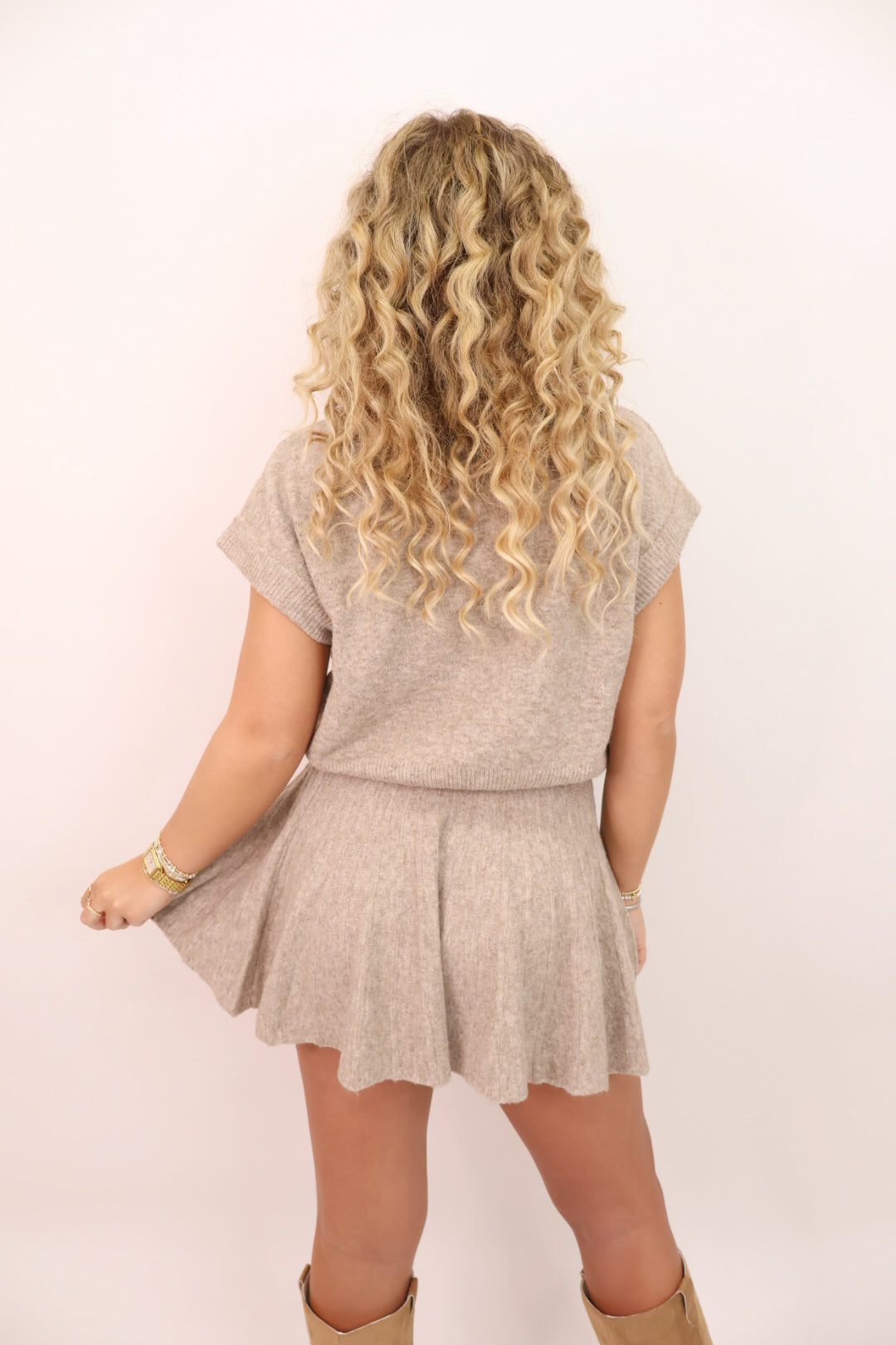 Sweater Mini Skirt Set - Taupe