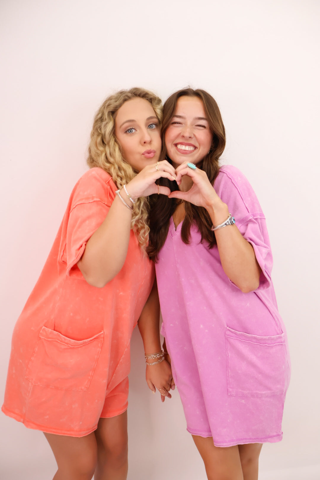 The mineral-washed finish gives each color a vintage, sun-faded look—available in coral orange, bright blue, lavender, and hot pink. We love it with sneakers and layered gold jewelry, or tossed over a swimsuit at the beach. Wherever you're going, this romper is coming with.