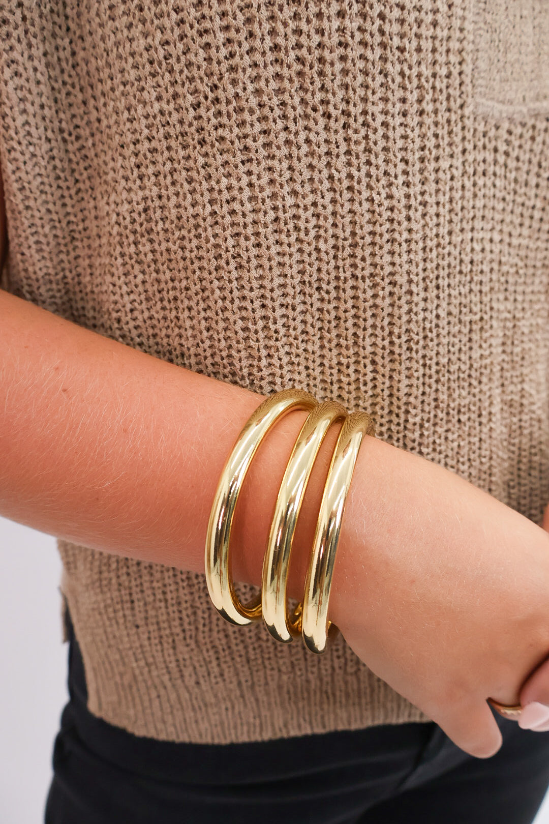 - Set of three coordinating gold bangles