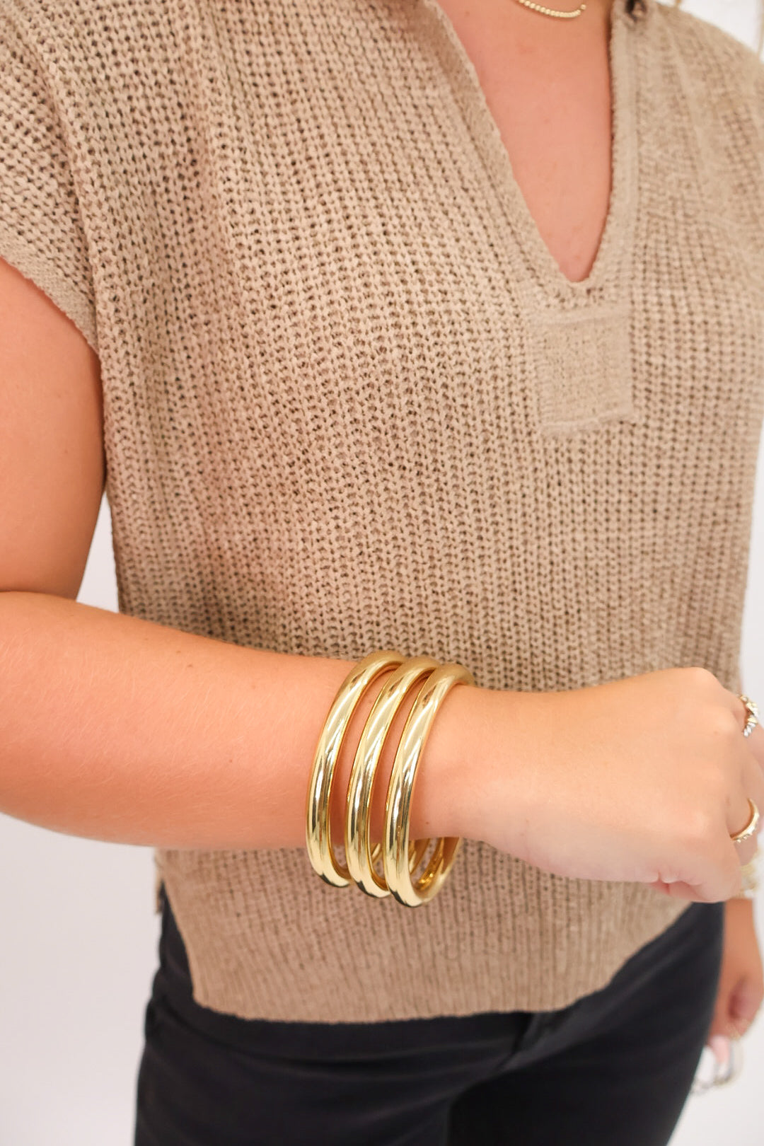 gold bangle set, chunky gold bracelets, stackable bangles, boutique jewelry, women’s accessories