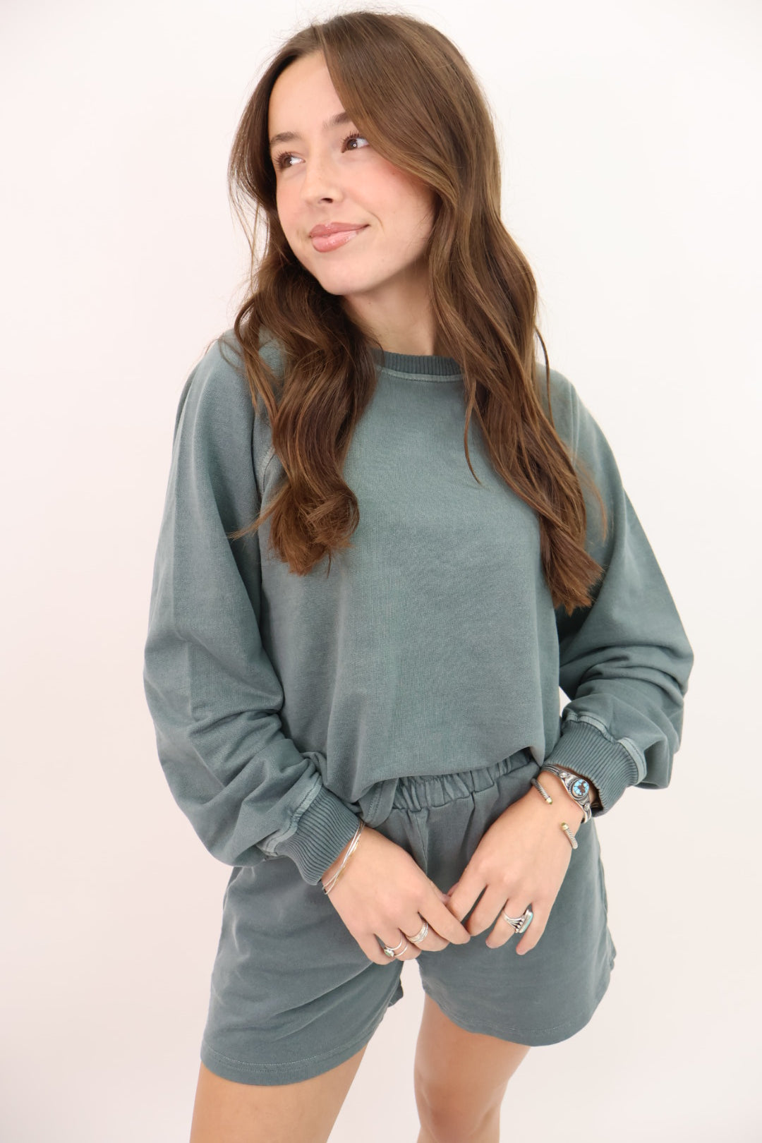An instant cozy win! This jade-colored short set is perfect for those days you want to look put-together without even trying. The ribbed cuffs on the sweatshirt and the flattering fit of the shorts make it easy to toss on and go. You’ll live in this all season long!