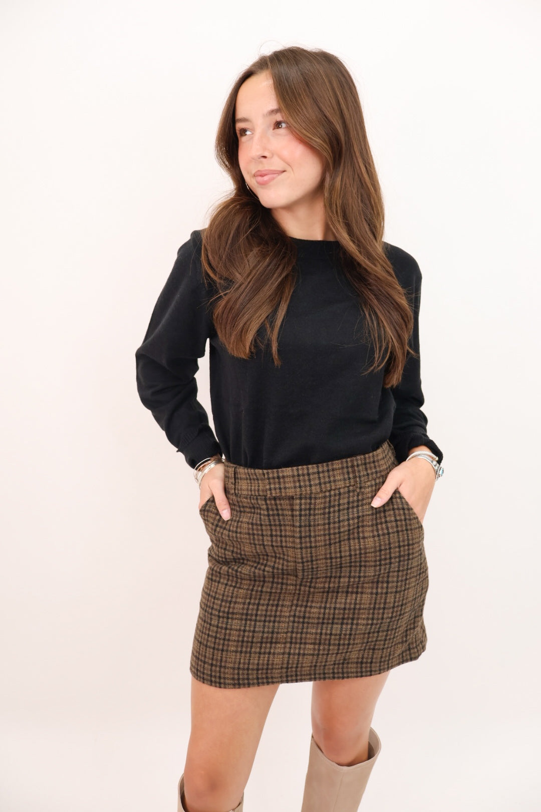 A timeless piece with major fall charm — our Plaid Mini Skirt is classic, flattering, and endlessly versatile! The soft wool-blend fabric and tailored silhouette give it a structured yet comfortable feel, while the warm brown plaid pattern makes it easy to pair with everything from chunky sweaters to sleek turtlenecks. Whether you’re hosting Thanksgiving or grabbing coffee downtown, this skirt gives preppy-chic energy in the best way!